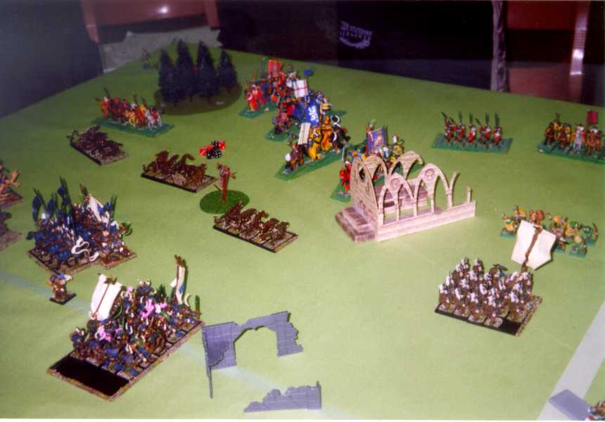 Por otro lado, varios ejércitos sufrieron tremendos varapalos: El primer Imperial (Diego Cameros), fue 21º, mientras que el primer Orco (Enrique Ruiz), fue 19º... ¡superado por Ismael Roig -16º- con un ejército exclusivamente de Goblins!. El único Elfo Oscuro, Carlos Pons, fue 21º (empatado con Diego Cameros). Se echó en falta a los Marcenarios, los Elfos Silvanos y la Legión Demoníaca, sin representación, y nos preguntamos por qué tropas tan cualificadas como los Hombres Lagarto, los Elfos Oscuros y los Hombres Bestia tan solo fueron defendidas por un valiente paladín... ¡Y también queremos saber por qué no vino ninguna mujer a jugar, que sabemos que las hay...!