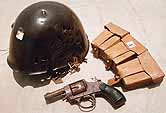 Como una demostración de la victoria conseguida, un grupo de orgullosos soldados peruanos, tiene, entre sus manos un estandarte de guerra ecuatoriano, puede verse al fondo, a la izquierda, un Tanque checoslovaco LTP, Panzer 38 (T), MOD M-14 (AKC-Stop). |