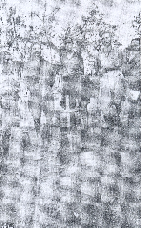 Dibujo ecuatoriano que pretende describir el llamado por ellos "Incidente de Bramador" ocurrido el 5 de Julio de 1941. Según la tendenciosa versión de los ecuatorianos el hecho se produjo cuando 2 soldados ecuatorianos "patrullaban" la frontera en el sitio denominado por los ecuatorianos como Bramador, en la provincia de El Oro, y un grupo de paisanos peruanos "pasaron" sin documentos a este lado; la patrulla ecuatoriana "los obligó de palabra", a regresar y los "acompañó" hasta la línea demarcatoria, donde los ecuatorianos fueron "sorprendidos" por una fuerte dotación de la Guardia Civil de Tumbes que los "atacó", muriendo los dos soldados ecuatorianos. |