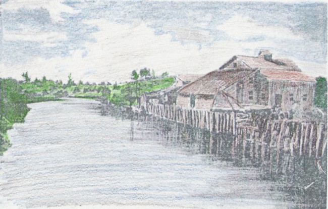 Judge James Kingsbury arrived soon after the surveying party, and wintered with his family at this place. He was compelled by business to return to New York that fall, and was delayed by illness from rejoining his family. He arrived in the dead of winter to find a child born in his absence, dead from starvation, and his wife almost on the point of death from the same cause. The first permanent settlement was made in Conneaut in 1798. Some thirty Indian cabins were then standing at the mouth of the stream. [it should be noted that this is incorrect information, the cabins stood near present day Harbor and Main Sts.]