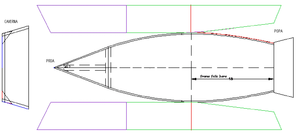 próximo à proa é a caverna central (frame central). Uma linha