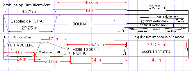 - Plano do fundo do barco.