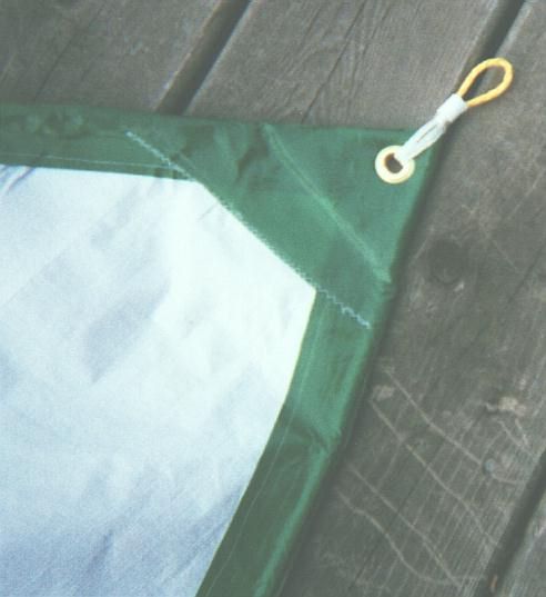 do material. Os laços opcionais de cabo nos cantos são presos aos ilhoses