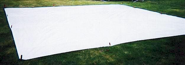 menos nivelado, estacas ou chaves de fenda para esticar o material (use
