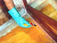 madeira ou metal, parecida com tinta a óleo. Em geral não é necessário