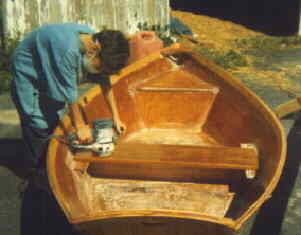 lado de dentro do barco, calafetando e arredondando as quinas. Use resina