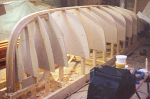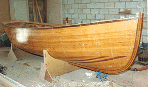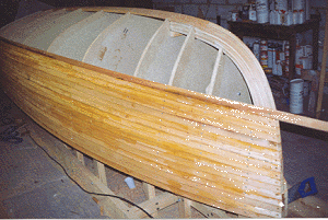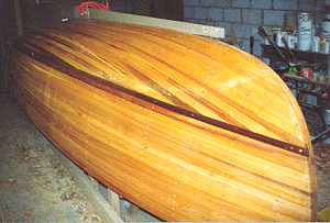 estreitas de madeiras, normalmente de cedro, vão sendo então coladas com