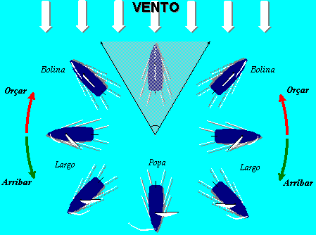 mareações, a maneira de como um veleiro navega segundo a direção do vento,