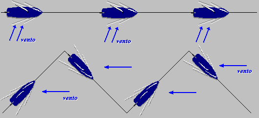 vento teremos de bolinar até chegar ao objetivo. Isto quer dizer que