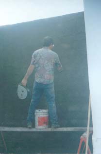 agregar piedrecillas y gravilla en el mortero de la segunda capa. Resultado: estuco de grano
