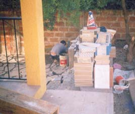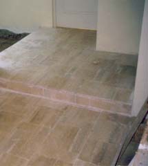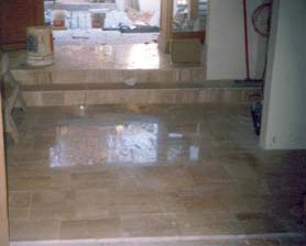 portal está alicatado con planchas de mármol.