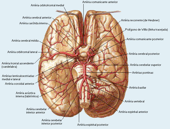 A vasculariza��o cerebral � formada pelas art�ria vertebrais direita e esquerda e pelas art�rias car�tidas internas direita e esquerda.