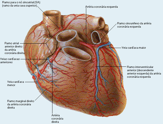 Sistema da aorta (sangue oxigenado): a art�ria aorta sai do ventr�culo esquerdo e se ramifica na por��o ascendente em duas art�rias coron�rias, uma direita e outra esquerda que v�o irrigar o cora��o. Logo em seguida a art�ria aorta se encurva formando um arco para a esquerda dando origem a tr�s art�rias (art�rias da curva da aorta) sendo elas: