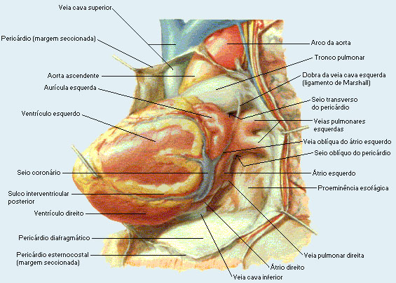Posi��o: colocado no mediastino, o cora��o ocupa uma posi��o obl�qua estando com o �pice voltado para baixo, para a esquerda e para frente e a base para cima, para tr�s e para direita.
