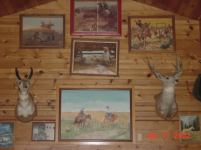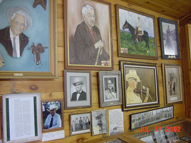 Assorted paintings and pictures of some old faces in the Tri State Cowboys association.