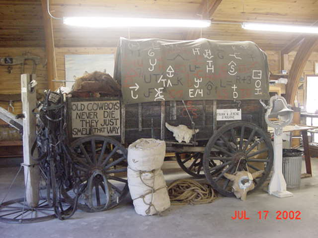 A stellar picture of our mighty covered wagon! Notice the sign that's been posted on it, now isn't that the truth?