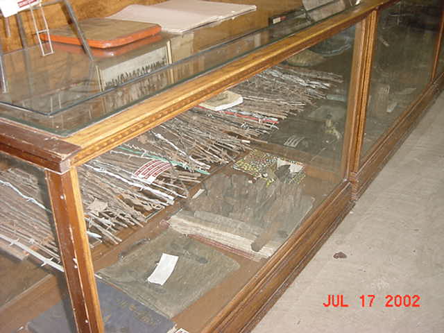 Barb Wire, and lots of it. A view inside on of our glass cases