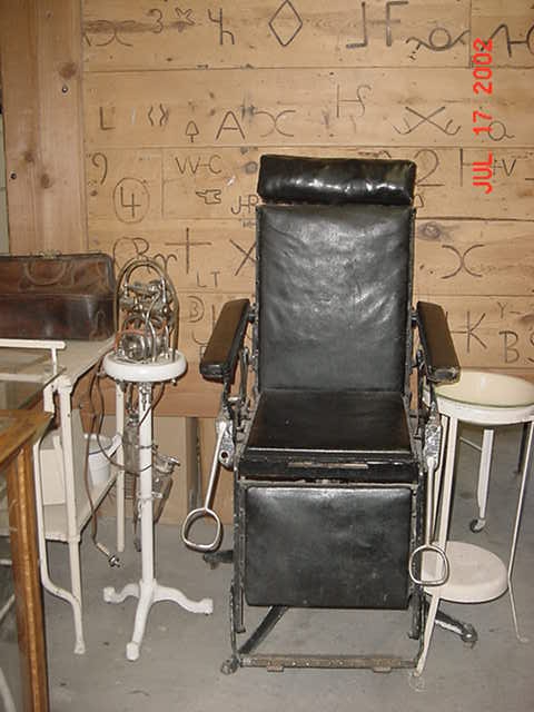 Be afraid, be very afraid. Believe it or not this is an old time Dentist's Chair, no wonder oral hygiene wasn't very popular.