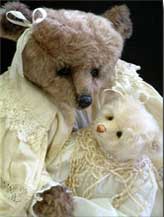 We have since grown as a business and I now work out of a 4 room studio and employ a full time seamstress, a part time Clothes designer and my husband is the other half of Oz Matilda who stuffs most of the bears limbs, does my cutting out and attempts the majority of paper work. He overseas the running of our family including doing all the cooking, shopping and anything else that takes up time, this enables me to be free to create, he truly is my right hand. It took a good 3 years for us to get truly established and find our niche in the bear world. It wasn't until 1998, I designed a limited edition of 60 x 24" bears for the Australian Rugby League Football, these were sold as a licenced ARL product and signed by Football players, being an ex-cheer girl dancer, I couldn't resist this opportunity and the attention it brought us, was overwhelming. We use to attend up to 15 bears show per year and trading with anywhere between 45-60 bears per show. Also in 1998, Oz Matilda Bears launched on Australia's only cable TV Shopping Network, only one other Bear Artist had attempted to sell through them successfully at that time. A large promotional advertising campaign was made by TVSN on the football bears and an introduction to their audience for my old style bears to include in my range through them. We have continued with the TV Shopping network since selling over 1600 Oz Matilda bears through them alone in edition form. We have a strong, loyal customer base here in Australia and I regularly do 'live' TV one hour 'bear shows'. To date, we still hold a record with TVSN for sell out shows within the hour. I talk on air live about my work and collecting teddy bears in general. I find it can be hard running a successful business and family but we are managing quite well by being dedicated and putting in the long working hours to achieve our goals. We now only attend 1-2 bear shows per year Internationally as I can no longer keep up with orders, shows and having my work sold through reputable International Retailers, so the decision to cut bear shows down was inevitable. We are so thrilled at where the bear world industry has taken us, the many doors that have opened for my work and the many friends and bear collectors we have been fortunate to meet around the world. Oz Matilda is a Trademarked name and I have a range of styles I create from old bears to historical period costuming dressed bears, Victorian/Edwardian themed and in September, 2003, I came up with an original idea of combining my love of oil paintings with my love of teddy bears. My first proto-type was called 'The Master Painter� He was 29 inches in height. We decided to auction him on American Ebay as I had no idea really what to price such a bear at, nor did I really have an idea of how he would be received. Seven days later, when the auction finished, we were so overwhelmed at the response. My Master Painter gave us a World Recognition for teddy bear design along with a World Record price for a sole teddy bear artist. His price reached was $17,700.00 USD (which is equivalent to $24,500 AUD or �9.500 GBP). Since then, I have painted just over 60 hand paintings to be inserted into an Oz Matilda bear which are Trademarked, Oz Matilda Masters. Now, we are more recognised World wide for my Oil Painted Canvassed bears than the initial old bear designs that brought me much popularity here in Australia. The paintings I enjoy painting most are still life pictures, flowers and my continuous attempt at the Master painters of yesteryear, such as Raphael and Michelangelo. Painting has always been my first love, so to combine something you truly love with Teddy bears, is just a dream career. I have won over 60 Awards in Australia for my work over the years and in 2004 was a Golden Teddy Nominee. I feel most humbled and privileged to have recently also been awarded a 2006 Toby Industry Choice awards as this was my first entry, I'm also twice nominated for the Golden Teddy Awards, 2006. My recent highlight for this year, was attending the invitational only Walt Disney Epcot show in 2006. Walt Disney Studios sent me two black/white photographs of Mr Walt Disney from their archives. I painted these photos into colour on canvas and placed into my bears bellies. A small limited edition was created for them and Licenced by Walt Disney including a separate one off piece for their Auction. I have currently been working on a project for the past year with a very large company and cannot wait for the release of this project; it's very exciting and probably the biggest highlight of my career, although it is still under 'wraps', so I cannot go into detail yet. However, you will be able to view some of my work featured in a new Bear Book which was published in the UK from Author, Kathy Martin. Lisa |
