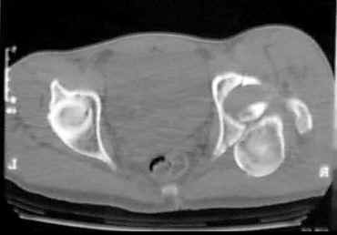 21 YO male who sustained a transverse and posterior wall fracture of the left acetabulum, with a entrapped fragment.