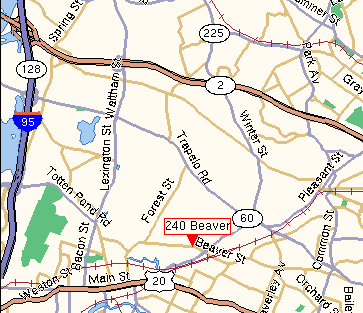 From Route 20: If you�re coming from the east, turn right at Lyman Street (landmark: Kentucky Fried Chicken on the corner). If you�re coming from the west or Weston area, turn left at Lyman Street. Proceed to the DeVincent Circle rotary. Go through the rotary to Beaver Street. Continue straight past Bentley College to 240 Beaver Street. The UMass Field Station is a brick building on the right. Enter the driveway just before the building.
