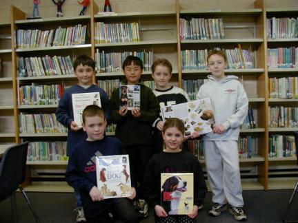 BOOK DONATION Field School students display new books about pets donated by the Charles River Dog Training Club. The Club holds classes in obedience for big and little dogs, beginners and competition stars, every Monday in the Field School gym, 99 School St. from 7 to 9 p.m. |
