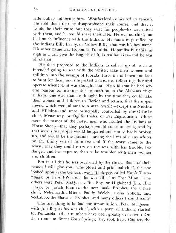This should put to rest as to who the Far Off was that attack Fort Mims. It plainly says he was a TUSKEGEE, and has the title Tustinnugee attached to his name. The Tuskegee Indians were a seperate and distinct tribe who spoke an intirely different language from any others. Tecumseh's mother was a Tuskegee.