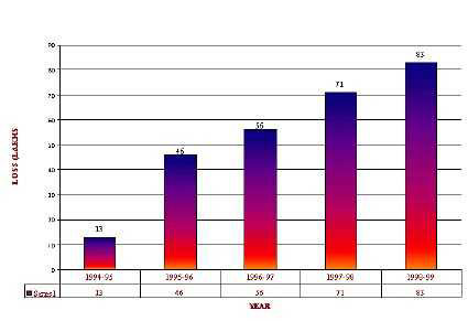 | 1994-1995 | 1995-1996 | 1996-1997 | 1997-1998 | 1998-1999 |