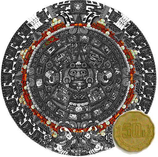 Como la moneda de 20 céntavos, la de 50 es un dodecágono también compuesta de otra frisa de la "Piedra del Sol".
