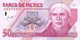 | Sobre el anverso del billete de 50 pesos se
