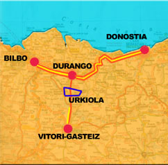 | Alrededores: Durango y comarca. La oferta hostelera y de ocio que oferta el parque natural de Urkiola se puede complementar con los servicios y la visita a Durango, Elorrio, Garai, Atxondo, localidades del duranguesado que ofrecen un interesante abanico de posibilidades en el terreno cultural y gastronómico. | ||