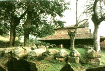 | Descendiendo, llegando a Berriz (pueblo famoso por los chuletones que se sirven en algunos de sus restaurantes.) tomamos la carretera que nos llevará hasta Elorrio. En este bonito pueblo podemos dejar el coche cerca de la plaza y tras disfrutar de la monumentalidad de sus edificaciones iniciaremos un paseo a pie hasta la necrópolis medieval(s.IX) de Argiñeta. Se trata de un conjunto de tumbas labradas sobre grandes bloques de piedra que se encontraban desperdigadas por la zona. En algunas de ellas se pueden leer inscripciones latinas. En los alrededores podemos disfrutar del típico paisaje rural vasco. Bajaremos al centro de la villa y buscaremos un lugar donde comer. Barrio de san Agustín, camino de Atxondo, junto a la iglesia de san Agustín, templo del s.XV donde se guardan las tumbas de los antiguos condes de Durango. | ![]() Necrópolis de Argiñeta. |