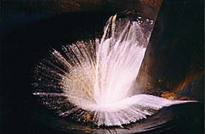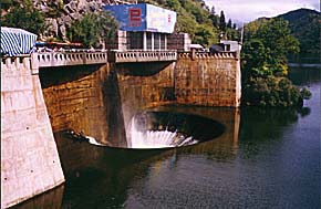 el agua del lago y descarga por un gigantesco embudo las aguas para