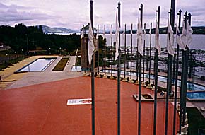 Vista del Lago San Roque desde la Plaza. Al fondo el