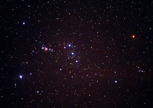 constelación de Orión, impresionante ante cielos oscuros, con las clásicas