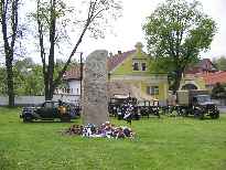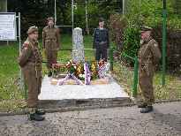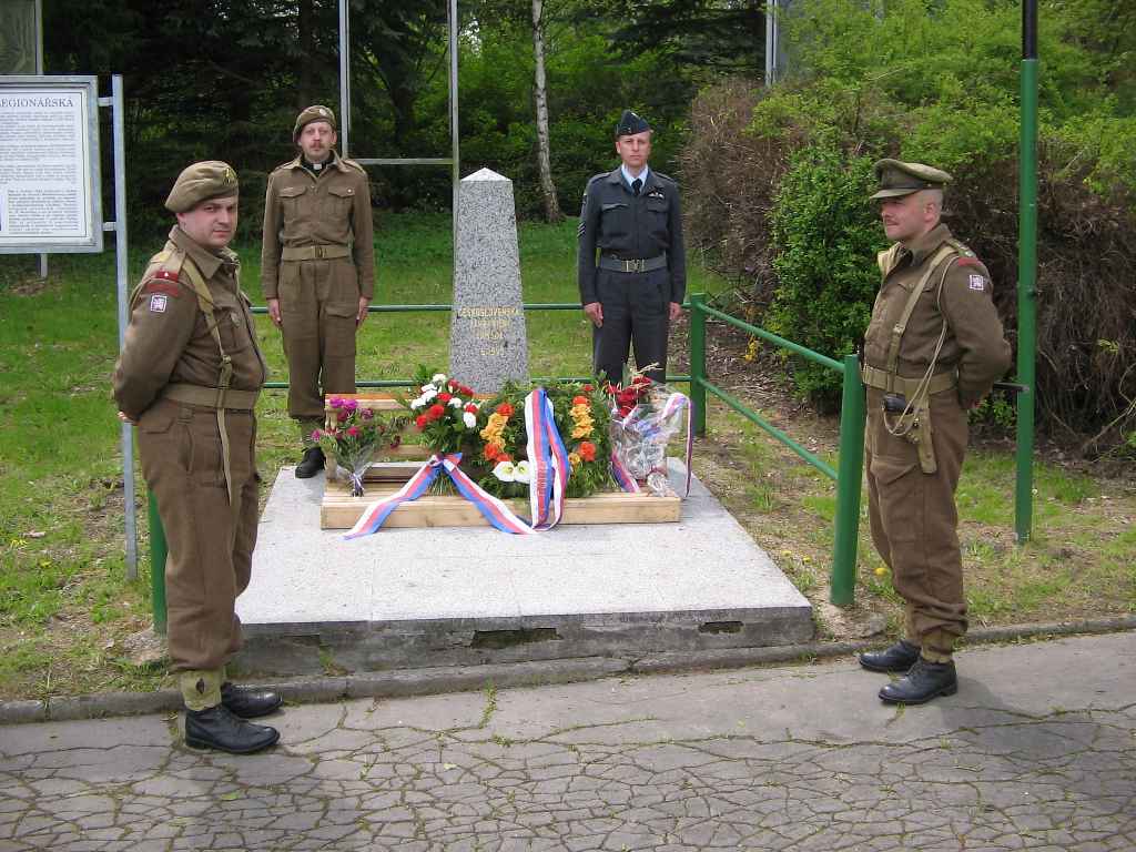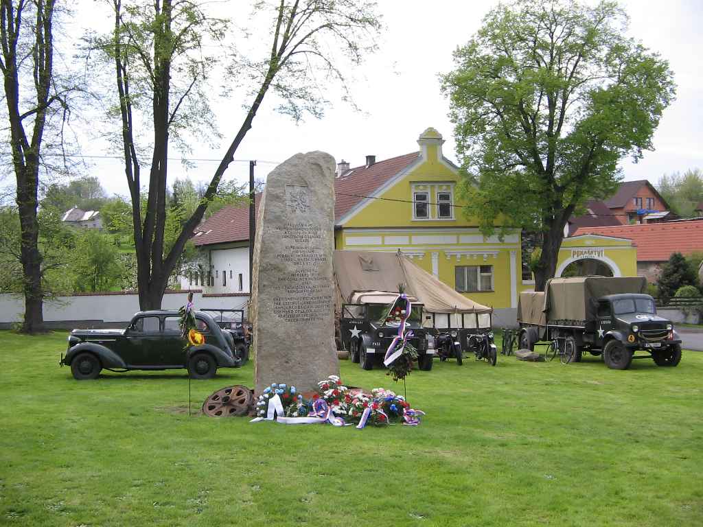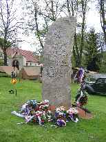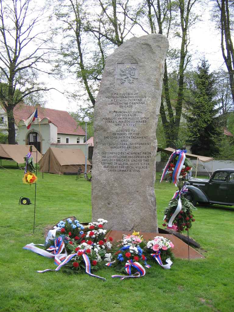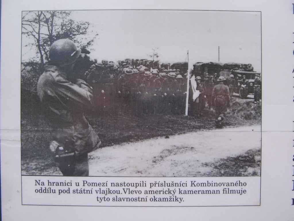 At Bamberg the unit met a group of around 200 Czechoslovaks who had been sent to Germany during the war, either as forced labour or to concentration camps as political prisoners, and had now been liberated by the allies. The unit invited them to join them for the evening, and heard from them about the actions of the SS and SA suffered by the Czechoslovak people. 28th April: BAMBERG - SCHESSLITZ - HOLLFELD - BAYREUTH - BERNECK - GEFREES - WEISSENSTADT - WUNSIEDEL - SICHERSREUTH The weather, which had so far been fine, was now worse, raining and cold. The column departed at 10:00hrs, and at the airport in Bayreuth they refilled with petrol. At 17:00hrs the unit arrived in Sichersreuth where they had accommodation, about 3km to the SE of Wunsiedel and only about 15km from the Czechoslovak border. On 29th April the 97th Infantry Division moved out from Wunsiedel and was replaced by the 1st Infantry Division, 1st US Army, to which the Token Force was then transferred. The unit spent the day cleaning and doing maintenance. The following day they completed the maintenance work and prepared for further movement. 6. Crossing the Czechoslovak border and Cheb 1st May : SICHERSREUTH - WUNSIEDEL - THIERSHEIM - SCHIRNDING - CZECHOSLOVAK BORDER - POMEZI (MUHLBACH) - CHEB Reveille at 06:00hrs, breakfast at 07:00hrs, convoy assembled at 08:45hrs. Stephenson had arranged for a number of Press Photographers, Reporters and Public Relations Officers to join them and record the Czechoslovak Army crossing the border of Czechoslovakia, including cameramen of the U.S. 3rd Army, and they now arrived. At 08:55hrs the convoy commander, škpt. Pujman, reported to the unit commander, pplk. Sítek, that the convoy was ready to depart, and at 09:00hrs it moved off. The column crossed the border between 10:00hrs and 11.00hrs and stopped for a brief ceremony. A flagpole was raised, an honour guard formed behind it, and the rest of the men gathered in a semi-circle. The Czechoslovak flag was hoisted by the oldest member of the LAA Troop, rt. Květ, Lt Col. Sítek made a speech, and the national anthem was sung. The unit then continued and entered Cheb at 12:00hrs. Stephenson had also arranged for the Public Relations personnel to be present when they entered Cheb (Eger), making a "triumphant" spectacle. Copies of Lt.Col. Sítek's speech were distributed to the press in both Czech and English, and sound recordings were also made in both languages. Promises were made that they would be played on the Czechoslovak and American networks, and to include news from Czechoslovakia itself and about the Czechoslovak troops from the west. It seems that Stephenson and pplk. Sítek had also put in a considerable amount of "selling talk" with all levels from Patton's Chief of Staff downwards at all the HQs they had visited (U.S. 12th Army, 3rd Army, 97th Division, and 1st Division) to try and get the main body of the CIABG released from Dunkirk and sent to Czechoslovakia. Stephenson described Cheb as being "not much of a place and is 100% German and pretty hostile ones at that". While there the unit was attached to the 18th Infantry Regiment of the 1st US Division. Immediately after their arrival, on the afternoon of 1st May, the unit sent out patrols into the streets of the town, and during the next few days the men of the Token force took over responsibility for security in the town. Patrols were made by the half-tracks and carriers of the unit out to the surrounding villages, but without any serious fighting. They had their hands full not just with taking prisoner the small detachments of German forces throughout the area, but also with the thousands of released and escaped allied nationals who had been prisoners of the Germans. There were at least 5,000 Russians in the town, with almost the same number of Poles plus many French, Belgians, Dutch, Hungarians, and other nationalities. There did not seem to be any definite policy in the American Military Government area, their Military Government teams being very few. It was feared that there would be nobody left to continue this work once the frontline divisions had moved on, so teams were created with a view to keeping this area of the Sudetenland functioning as part of Czechoslovakia and maintaining order and discipline in the rear areas. In view of the hostile local population this could only be done by administrators supported by armed bodies of local Czechoslovaks, and this was proceeded with as quickly as possible. Stephenson obtained permission from the U.S. Military Governor at 1st Division to collect and enlist various groups of Czechoslovaks who had been located in German border towns, bringing them to Cheb, As they arrived they were grouped under an officer and used to assist in the local administration and maintenance of law and order. Originally armed with captured German rifles from various sources, Stephenson then located a German arsenal in the town of Hof and obtained permission from the Americans to draw all the rifles required. As the American advance in front of Cheb seemed to have come to a halt, on 6th May Stephenson and Sítek went to the HQ of 1st US Division to ask that the Token Force be transferred to the spearhead most likely to reach Prague first. They were ordered to report to 2nd US Infantry Division in Plzeň the next day, and arrangements were made to leave in the morning. Por. Sommr with prap. Petrovič and voj. Goetz were sent on to Plzeň by Jeep on orders from 1st US Division to act as liaison between the U.S. Army and the local National Council there. Sections that had been stationed at Františkovy Lázňe and other outlying points were called in and replaced with the recently recruited local Czechoslovaks. However, des.asp. Ungar remained in Františkovy Lázně as liaison with the American army. 7th May: CHEB - MITTERTEICH - TIRSCHENREUTH - NEUSTADT - WEIDEN - WERNBERG - VOHENSTRAUSS - WAIDHAUS - STRIBRO - PLZEN In the morning of the 7th May, St