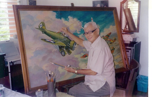 | In the succeeding year, prof. Dizon won first place in the international competition of contemporary art from 79 countries at the Golden gate International Exposition in San Francisco, California, USA, with his award winning oil painting: "AFTER A DAY'S TOIL," beating Salvador Dali of Spain to seocnd place. The third prize went to the U.S. entry, by Robert Phillip. During this time, Prof. Dizon was an art educator at the University of the Philippines, Mapua Institute of Technology and at the national Teacher's College, all in Manila. Dan remembers that his father's FIRST PRIZE win sent manila and the entire country into uproar. The outbreak of World War II starting December 08, 1941, made life very difficult for the Dizon. In Early 1942, the Japanese MilitaryAdministration ordered the reopening of all educational institutions in Manila and in the entire counry, including the University of the Philippines. Prof. Dizon refused to work under the Japanese by feigning illness. For his family to survive, he accepted occasional art commissions in his hovel in a rented apartment in Santa Cruz, Manila. Meanwhile, his family was living with his in-laws in Angeles City, Pampanga where Dan tried hard to stave-off creeping starvation by working as a part-time kitchen boy after school in the regimental Kitchen of the town's Japanese Army garrison. It did not take long when some japanese officers and soldiers discovered the artistic talent of Dan, who was supplied with hard-to-find pencils and Clean sheets of white paper to encourage him to draw. They would even pose for him their crisp uniforms and shiny firearms and then send the drawings to their families in Japan. In turn, Dan was astounded at the interest of these fierce and frightful Japanese soldiers had on art. He would soon discover that mostof them are artistically inclined and were food in drawing. Unknowingly, the Japanese introduced Dan to anew field of Art - Military Art! Very soon Dan's drawings consisted of Japanese military men, their firearms, equipment, vehicles, tanks, airplanes, etc., from memory... to the delight of his Japanese audience. |