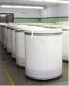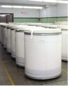 Plastic & Vulcanized Fibre Sliver Cans, trolley, 'Everclean" Castors - Never required to be cleaned..