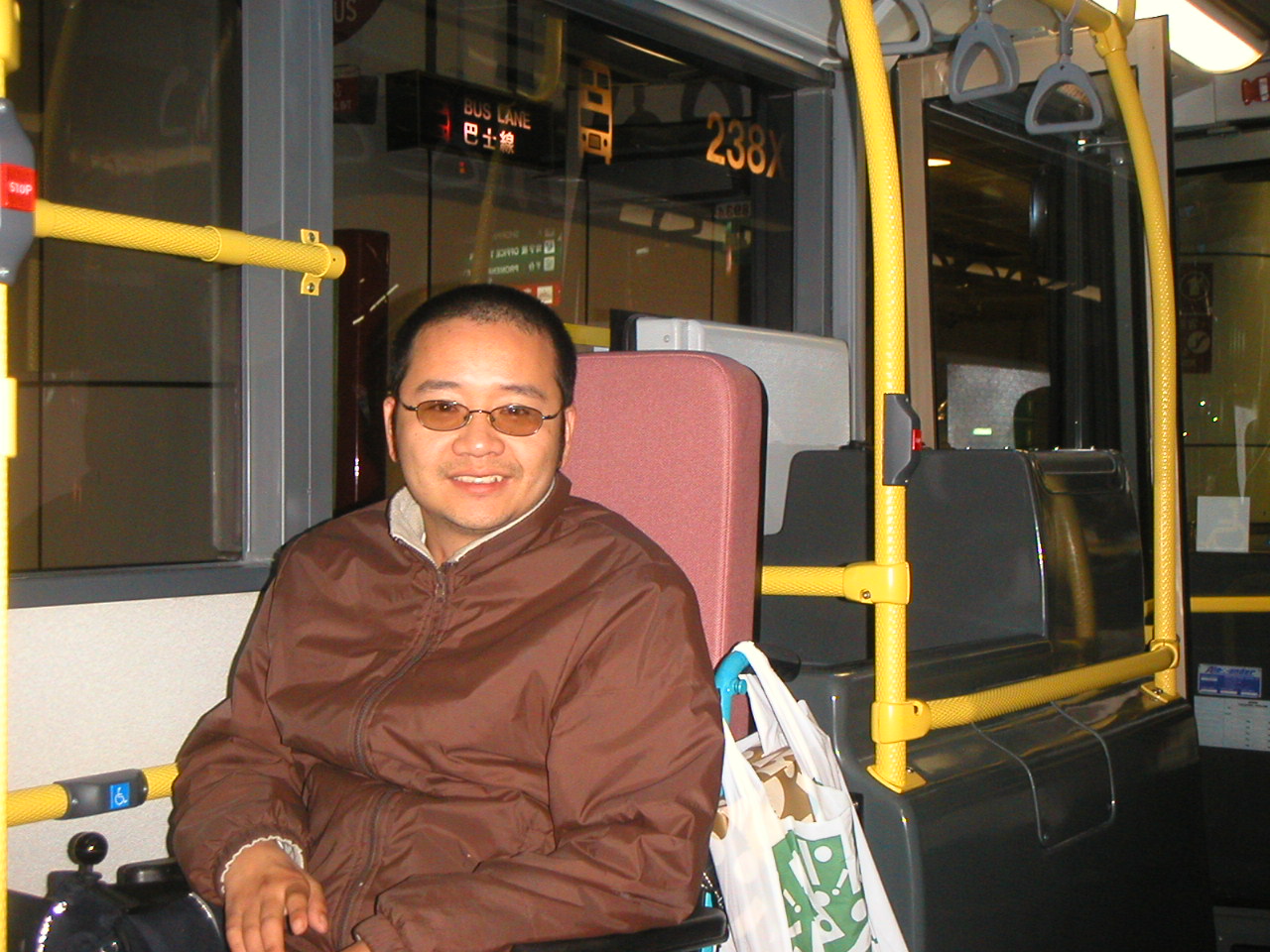 | 首先要多謝九龍巴士公司給我這份禮物,由2003年2月1日238X號路車隊終於引用4輛全自動化,超低地台 「易搭巴士」。 從此我就可以利用這種具備超卓功能,極為方便所有電動輪椅上落的車款,配合巴士 服務傷健同用的精神。 超低地台「易搭巴士」備有降低車身及伸出輪椅斜板功能。車長只需按鍵, 車身前端便會自動降低,全面自動化輪椅斜板,便從巴士前門伸出,放至行 人路地面,讓輪椅登上車廂。本車款更具備最先進的安全設計,當斜板移動 中觸及任何物件,均會自動停下。 這些具備以上卓越性能的「易搭巴士」,於九六年起投入服務,可是到現階段荃灣海濱花園巴士總站月台尚未有方便輪椅上落的斜坡,我只好駕著電動輪椅,用最高每小時7公里速度 行駛,用上5分鐘去到最近的238X巴士。 |