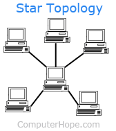 1. All the computers and other devices on the network connect to a central device(hub/switch), thus forming a star. |