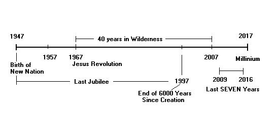 | 40 Years in the Wilderness 1967 to 2007 Almost everything that happened in the past is a pattern that will again occur in the future. For just as Moses lead the Children of Israel, 'Out of Egypt', so shall we have our End Time King David who will not only take us 'Out of Egypt' but into the promised land of the Lord's PROMISES, and GATHER us into ONE. For the YEARS of his life, will surely again be the same as was promised King David of Old, who lived seventy years. (SEE Seventy Years of Moses) And again will be the same as Moses prophesied .... Psalm 90:10 The days of our years are threescore years and ten And out nation was established at the birth of our Latter Day King, who was surely born in 1947, just 50 years (or one jubilee) before the END of 6,000 years of World History, culminating in 1997. Psalm 90:4 For a thousand years in thy sight are but as yesterday when it is past, and as a watch in the night. 4004 B.C. to 1997 A.D. equals 6,000 years, (SEE 1,000 Year Divisions of History) meaning the Millinium was started as Jacob (Israel) served 14 years under Laban before His two wifes and two handmaidens were paid for, and he could depart. (SEE Measurement confirmations in the Giza Pyramid Prophecy Additional 14 years.) This because we, the Lord's Bride will be fully accounted for and 'Sealed' right at the very start of the Tribulation Period, The Year that started the Last Seventy years, will not be when the worldly nation of Israel called itself Israel, but when our King shall have been born in 1947. (See Timeline of the End) For from THEN, just tweny years later was the year 1967, the significant event was NOT the 1967 or 6 Day War that Israel had with its Arab neighbors, but when the Children of Israel departed from Egypt through the Jesus Revolution that started in 1967. It was a movement of the Spirit that reached the youth of the West and even spread to the East, in getting His people, His youth to serve the Lord full time and 'OUT OF EGYPT' and out from under the labours of working for mere money and things. The Hippie Revolution that sprang from San Francisco that same year was without focus and goal, but the true revolution of hearts that started later in 1967 in Huntington Beach was from the Lord. The Lord's earthly leader back then being David Berg, who became known as 'Moses David', (SEE http://www.arts.ualberta.ca/~skent/Linkedfiles/lustfulprophet.htm ) Yet because of his many errors, alcholism and pride, he fell short and the whole movement under him faltered and has been struggling ever since in the wilderness. And still, it has to be admitted that they were the start of the jesus revolution and the only remaining vestige of the revolution that was meant to take youth and adults out of Egypt and the worldy systems. But just the like the first Children of Israel, these Children of God have had to wait for the older generation to pass away from among them before some of them go on and enter into the promised land. This because their past leader David Berg died in 1993, while Karen Berg, his second wife, took over the reins in trying to hang on what she was never destined to lead. And yet she shall leave them as well, yet what the Lord started He has to finnish.. Philippians l 1:6 Being confident of this very thing, that he which hath begun a good work in you will perform it until the day of Jesus Christ: As it is now 2007, and from my calculations and the Lord's prophecies, NOW the Lord has to deliver his people not just out of Egypt but INTO the promised land, and start to gather them spiritually before the physical GATHERING takes place in 2013. The Iranian War will bring almost bring the world into WW3, and yet force ten countries to sign the long awaited peace COVENANT by the middle of 2010.. This to mathematically make the midpoint of the Last SEVEN YEARS of Daniel, be on December 21,2013... the wintersolstice and the darkest day of the year when the Anti-Christ rises to power and takes over the whole world. A few more years to go Brethren, but this year 2007 has to have spiritual implications in a Great Change and coming OUT and INTO a NEW PROMISED LAND. Not now, but in August or September. That's what I got from the Lord, and I'm sticking with it It follows the pattern, and all the pieces of the Lord's puzzle and SOLUTION have to be in place BEFORE the Covenant signing and before we GATHER. For there is much to be done in finding the 144,000 lost sheep of the Lord before the DARK DAYS FALL. 2 Peter 1:19 We have also a more sure word of prophecy; whereunto ye do well that ye take heed, as unto a light that shineth in a dark place, until the day dawn, and the day star arise in your hearts:. IHS David June 2007 |