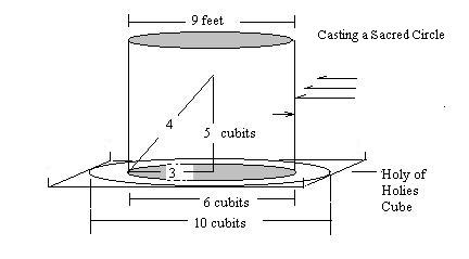 | David Jay Jordan's Index Christian Magick Casting a Sacred Circle Creating a sacred space is not a new age ideal but a principle of prayer from the beginning. It is totally scripturial. The Lord himself encouraging us to pray to Him in private, even if it be a closet, to get away from the distractions of this life. So creating a sacred space by casting a circle is nothing more than drawing a line around you, into which you don't want any spirits to enter in that are NOT of HIM. You can do this indoors or outdoors in His created Temple called 'Nature' The choice is yours, and the words in prayer should be your choice as well ....... as you have to believe in your heart and mind for any prayer or any circle to be valid. For an excellent background resource on the subject of casting a sacred circle, do read RawnaMoon's excellent site at http://members.aol.com/RawnaMoon/magick.html (as I do agreewith many of her words, although differing with others) so you decide for yourself, what you personnally believe, and do proceed if you have FAITH or want to go beyond in your prayers and concentration and focus to the LORD of LORDS .. JESUS. For sonsider this excerpt of hers ... ""So we have a Theology of Suspicion. All the ideas and methods of the world are suspect. That's a delicate way of putting it. A more blunt way is to say we have a Theology of Paranoia and Fear. The world is not a safe place. Behind all its wonders and marvels is the power of Satan, the great deceiver. To their thinking the greatest deceptions of Satan are in the world of the occult. To this mindset the occult is a dangerous world of trafficking with demons. It means simply working esoteric means to contact demons to gain demonic power. For people who buy into this way of thinking about the occult it is simply too obvious that using occultic methods will entangle one in demonic deception. But is that what the term actually means? The origin of the term "occult" comes from a Latin phrase ob celare, which literally meant "towards the hidden". The idea was that certain knowledge and understanding was not common and open, but hidden and secret. Not secret in the sense that it was kept from people, but secret in the sense that, unless one sought it out, one would not find it and know it. In other words those who turned towards the hidden could find this knowledge, study it, learn it and master it, but only those who turned towards it. We may not use the term in quite that way today. If we did we would have to say that most of the knowledge in our world is occultic. Doctors of medicine have an occult knowledge the rest of us never sought. Lawyers also have their own occult knowledge, as do Engineers, Scientists, Theologians, Pharmacists, and anyone else we would call an "expert"". ""We tend to think of our own personal space as a circle, which only makes sense since the area that one can reach without moving actually is a circle. Also space in general seems to be defined by circles. The earth appears to be a circle for the horizon is the defining circle of its space. The Sun and the Moon are circles and move in circles. (We now know they are actually ellipses, but these are so close to true circles that only scientific measurement tells us otherwise.) We often do not build in circles but in squares and rectangles. But when out in nature and claiming an area as our space we revert to circles. The idea of a circle around the campfire is so natural we never question it. Thus it is just human nature to think of a certain space in terms of a circle, especially if the space is a temporary one created just for a brief period of time. Even if one doesn't draw a circle in the ground one would still tend to create a circle just by claiming a certain area as a sacred space . When one wishes to commune with the Divine in Nature it is very helpful to do so out in Nature, to claim a bit of the earth as a safe place to experience the sacred. In doing this the space is set aside by the worshipper, even if the worshipper doesn't do this formally. The intent of the communer sets aside the circle"". And on and on RawnaMoon further explains, 'how to cast a sacred circle' and WHY, because this circle is for our protection from outside disturbances and distractions and spirits. It can simply be done by walking around a circle or drawing a circle in a room or outdoors with a rod....and once it is established.... we have created a sacred space for prayer. But for my addition to this mystery of prayer that can be useful for us Christians that believe prayer can be magical and can cause change when we pray to the Lord of miracles, can I suggest that there has to be a reason why this sacred circle is usually described as being nine feet in diamter. For when you read further from different sources, the circle always seems to be close to nine feet as the optimum diameter. Why is it always said that a sacred circle extends only nine feet out. Well, in my opinion, it is because the Lord's 'Physics and His Laws' that must dictate that this is the diameter of our personal space and the area of maximum spiritual protection. Consider Diagram Below ..... For also consider the co-relation with his cubic measure.... as nine feet is 6 cubits....making the radius 3 cubits. So if you make a 3-4-5 cubit triangle, the sacred Pythagorian triangle that creates the perfect 12 knotted, 90 degree angle that the Egyptians knew about, notice that its height would be 4 cubits or six feet, and the hypotenus would be 5 cubits. And this all fits perfectly into the Holy of Holies..... a six foot four inch man, with a pineal level of 6 feet, a heart level of 3 cubits or 4.5 feet, and a shoulder level of 5 feet SEE Vitrium Man in the Holy of Holies And hence with a five foot rod, of shoulder height, then using it to etch out a circle would make a nine foot cicle with him at the center. Try this yourself and see how close you come using a five foot wooden rod. This interesting because 