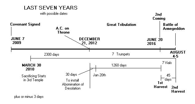 | March 30, 2010 Passover, the start of sacrificing on the altar before the Temple, as it is being constructed December 21, 2012 Equinox, shortest day in the whole year, least amount of light Hanukkan |