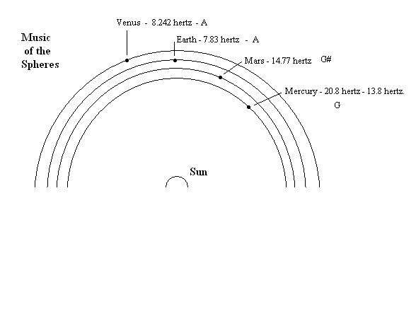 | David Jay Jordan's Home Math Music Music of the Spheres Part 2 The Heavens declare the glory of God; and the firmament sheweth his handywork. Day unto day uttereth speech, and night unto night sheweth knowledge. There is no speech nor language, where their voice is not heard. Their line is gone out through all the earth, and their words to the end of the world. In them hath he set a tabernacle for the sun, Which is as a bridegroom coming out of his chamber ... Psalm 19: 1-5 Anyone gazing out into the night sky, seeing the Lord�s stars and planets and Moon, should hear His Voice and recognize His awesome Power. But if not, He also can prove to any with a mind, that He alone is the Creator via His numbers and music. This meaning, we ALL are without excuse. No one can claim not to have been able to know the Lord, for His line has gone out to all the Earth. I mean even the arrangement of the stars in their constellations tells the Messianic Story if our eyes and minds are OPEN. (SEE Messianic Story written in the Stars). The whole creation points to Him, whether in the microcosm or in the macrocosm of heavenly planets. So we are not alone in the Solar System as all these planets and the Moon and the Sun were specifically put in place for life here on EARTH. And they all can be played together musically. It may remain a mystery as to how specifically each planet can effect us, but surely each can and does, just as the Moon has a direct effect on our lives, weather, tides, emotions, and more. And if planets align, then surely their solitary effect is magnified when in combination, just as with laser alignment. (SEE Alignment). For again, the Lord uses these heavenly bodies for signs, just as the three wisemen mentioned in the Gospels, knew. If we place the planets with their notes as a diagram with the Sun as the center of the Solar System it looks like this. But the even more amazing musical note correspondence is that the Sun has a musical ratio of 1.69 just like Saturn and its rings, and yet it is in the center of the swirling phi strung out planets rather than just rings. And this F # Frequency is what is said to be involved in levitating stones by the ancients (SEE F # Levitation) And furthermore, it is said that F sharp is the note reached inside the Lord�s Great Pyramid at Giza. (F # Key to Kings Chamber). Is this odd, no because it was as we might have expected. The literal Sun being a parallel to the One and ONLY SON of God. (SEE Tabernacle of the Sun/Son). F sharp of the Sun lifting stones, F # of the Son lifting souls in Giza, and F sharp being the central focus and integral part of our literal Tabernacle in the wilderness in the EndTime (SEE Graphics) F # being 740 hertz if A is tuned at 440 hertz. This meaning 74 is harmonic to 44, 37 to 22, and 11, as well as Absolute 33 hertz, the frequency inside a charged phi crystal like Giza or New Jerusalem. (SEE 29 Steps). But putting all these numbers and concepts together may take a bit more study, nevertheless, the first thing you might concentrate on is understanding that YES, there is an exact correlation between the planets and our moon with the Earth and its musical. So like the ancients, we can literally hear the Music of the Spheres if we are in tune with its Creator .. and His name is Jesus. In my musical and mathematical opinion David Jay Jordan [email protected] Back to Music of the Spheres Part 1 |