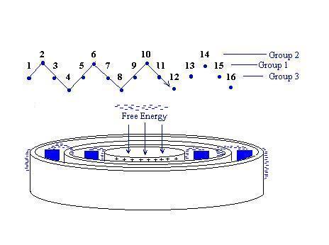 | David Jay Jordan Home Math Science Searle Graphics Free energy or ions (negatively charged) entered into the top of the positively charged core, and then left through the sides and back to the top of the rollers. They accumulated on the inside edge of the next ring, then into the top of the next roller, moving towards the outside where their electricity could be picked up by brushes as a generator or as power for an anti-gravity vechicle (flying disc - UFO) More later ..... David Jay Jordan |