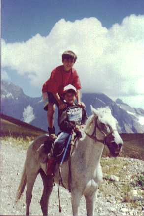 My guide recruited his twelve year old cousin to help show me around Ushguli. They showed me the churches and museums (they were fine gold-smiths two to three thousand years ago) and we explored a fortress high up on the hill above the village. Both boys road horses the way American kids ride bikes, so when I wanted to explore the valleys and passes, they got on their horses to show me the way and I happily walked. We went to the glacier that is the source of Georgia's second largest river. They did make me ride the horse long enough to cross the river one time. I was convinced that I would fall off, but somehow I survived. We found a mineral water spring, then a suspension bridge where the surface was woven of small branches no more than half an inch in diameter.