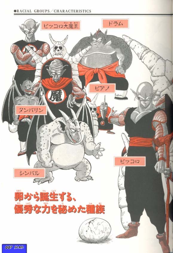 This is a race that exists mostly in the afterlife in Hell. Though some are in the living world. The leader in one of the many dimentions they exsist in is: Dabura. Demons can also be created, the most famous of this kind of demon is: Majin Buu.