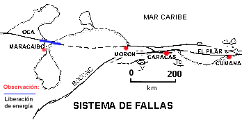 Observación: Los días domingo 20 y lunes 21 de febrero del 2000, se registraron 48 sismos de baja intensidad en la Falla Maracaibo - Morón, esta tormenta sísmica que se presenta hace presumir que pueda suscitarse un movimiento sísmico de mediana intensidad en los próximos días por lo que los residentes cercanos a esta falla deben estar alertas y tomar las medidas necesarias para estos casos.