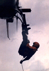 De la forma de descenso en rappel, en Venezuela generalmente saltamos por afuera de los Skid, en otros lugares como Canadá y Australia, lo hacen por dentro del Skid, es decir pegado al fuselaje, cualquier técnica es adecuada, si se hace correctamente y todas tienen su ventaja y desventaja, dependiendo la operación a efectuar y la persona que la hará, en fin, antes de hacer algo, hay que estudiar todos los elementos, pero lo más importante, vuelvo y repito, es el estar debidamente entrenados, si no se sienten seguros, no hagan algo que no saben hacer o no han hecho y mucho menos si es una Operación Real. Si es un ejercicio, no hay problema, pues para eso son, para capacitarse.