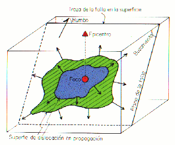 A lo largo de la quebradura o falla se libera repentinamente, en forma de vibraciones u ondas sísmicas, la energía que se había acumulado en las rocas.